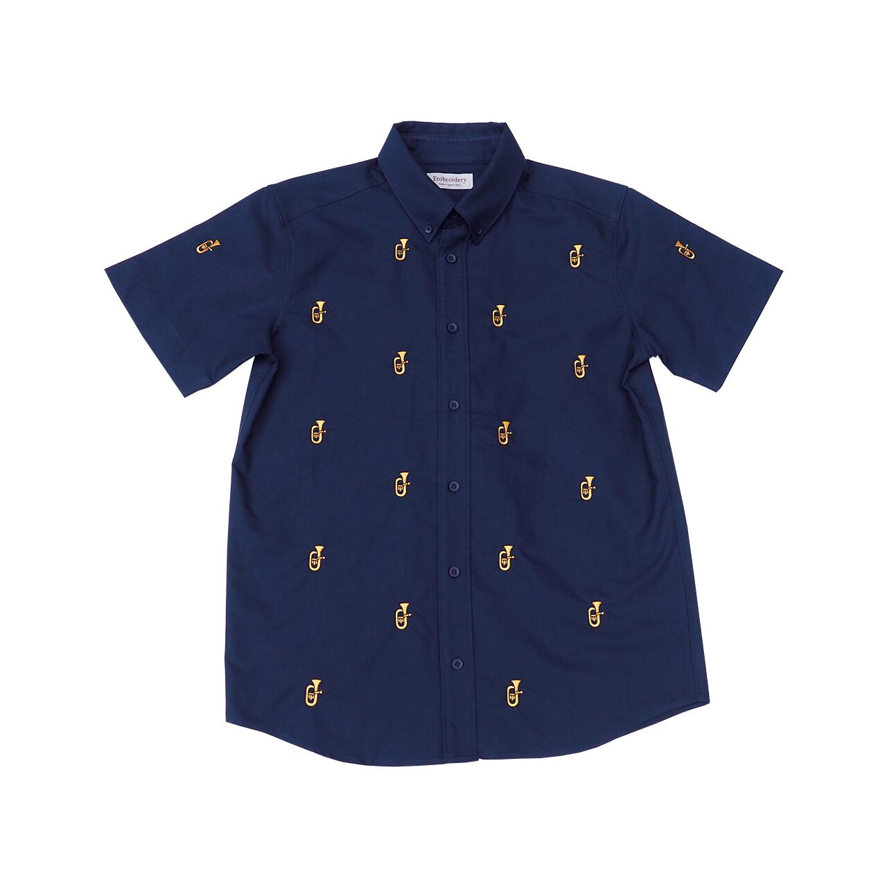 ベーシックなシルエットのボタンダウンシャツに、重量感のあるチューバをポップなデザインで刺繍しました。
