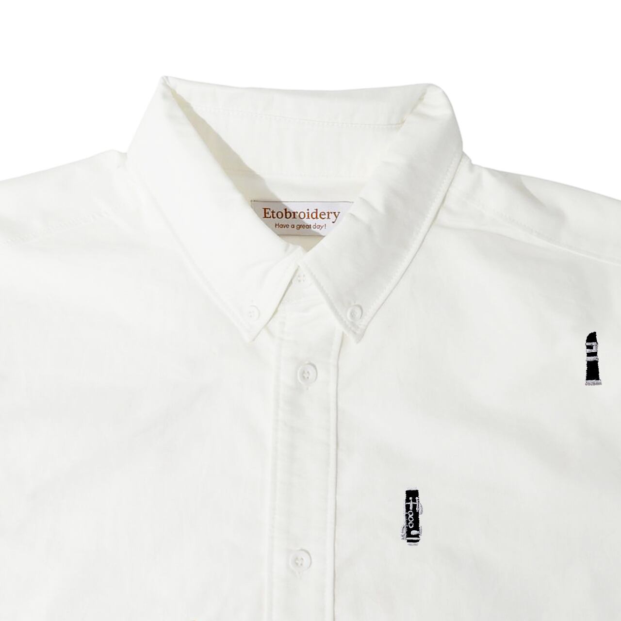 クラリネット柄オックスフォードシャツ【半袖】ホワイト〈刺繍シンプルver.〉